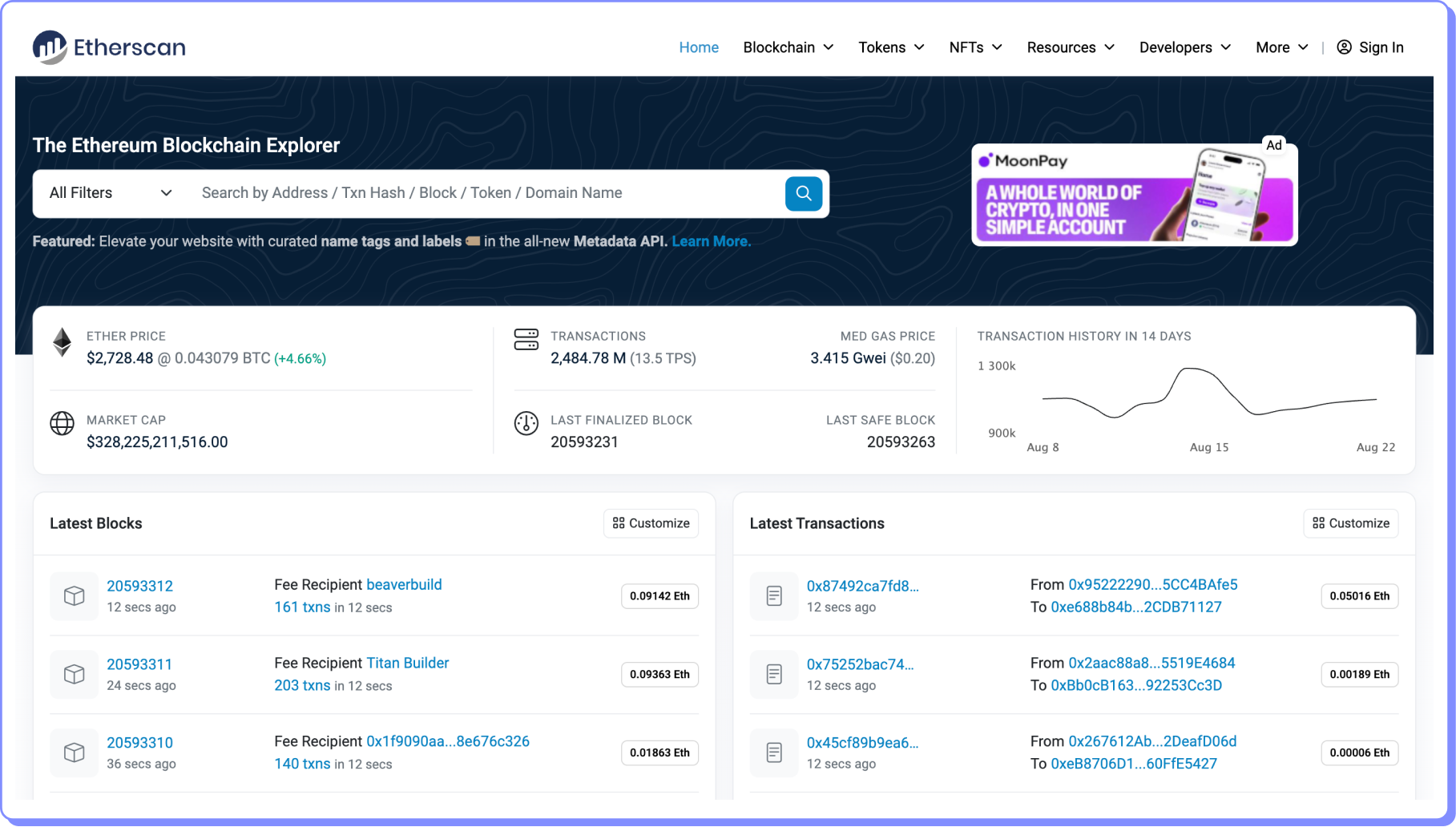 Os blockchain explorers funcionam coletando dados da blockchain. Esses dados são coletados usando uma variedade de métodos, como o rastreamento dos nós da blockchain ou o uso de APIs fornecidas pelos desenvolvedores das blockchains.