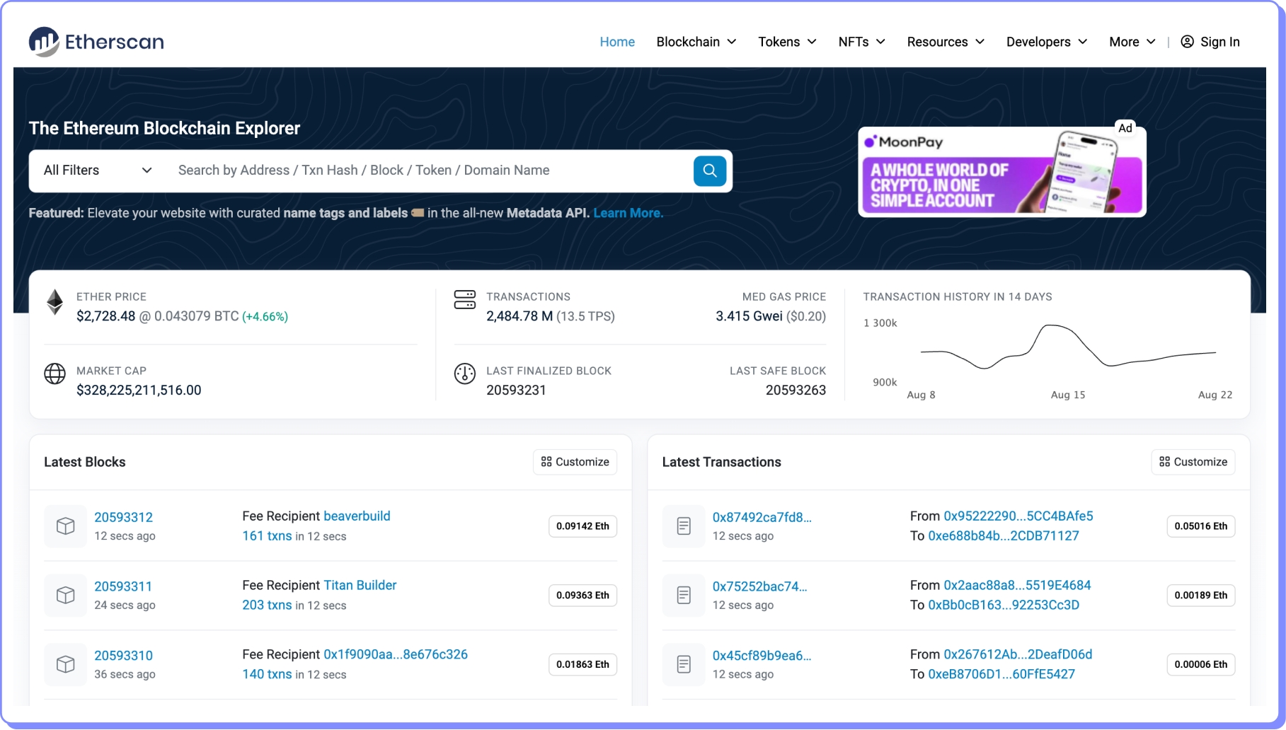 Um blockchain explorer é uma ferramenta que permite aos usuários explorar uma blockchain. Os blockchain explorers podem fornecer informações sobre a blockchain, como blocos, transações, endereços e contratos inteligentes.