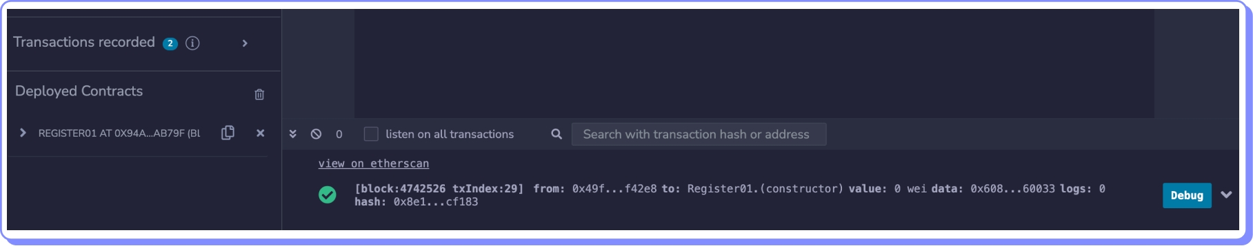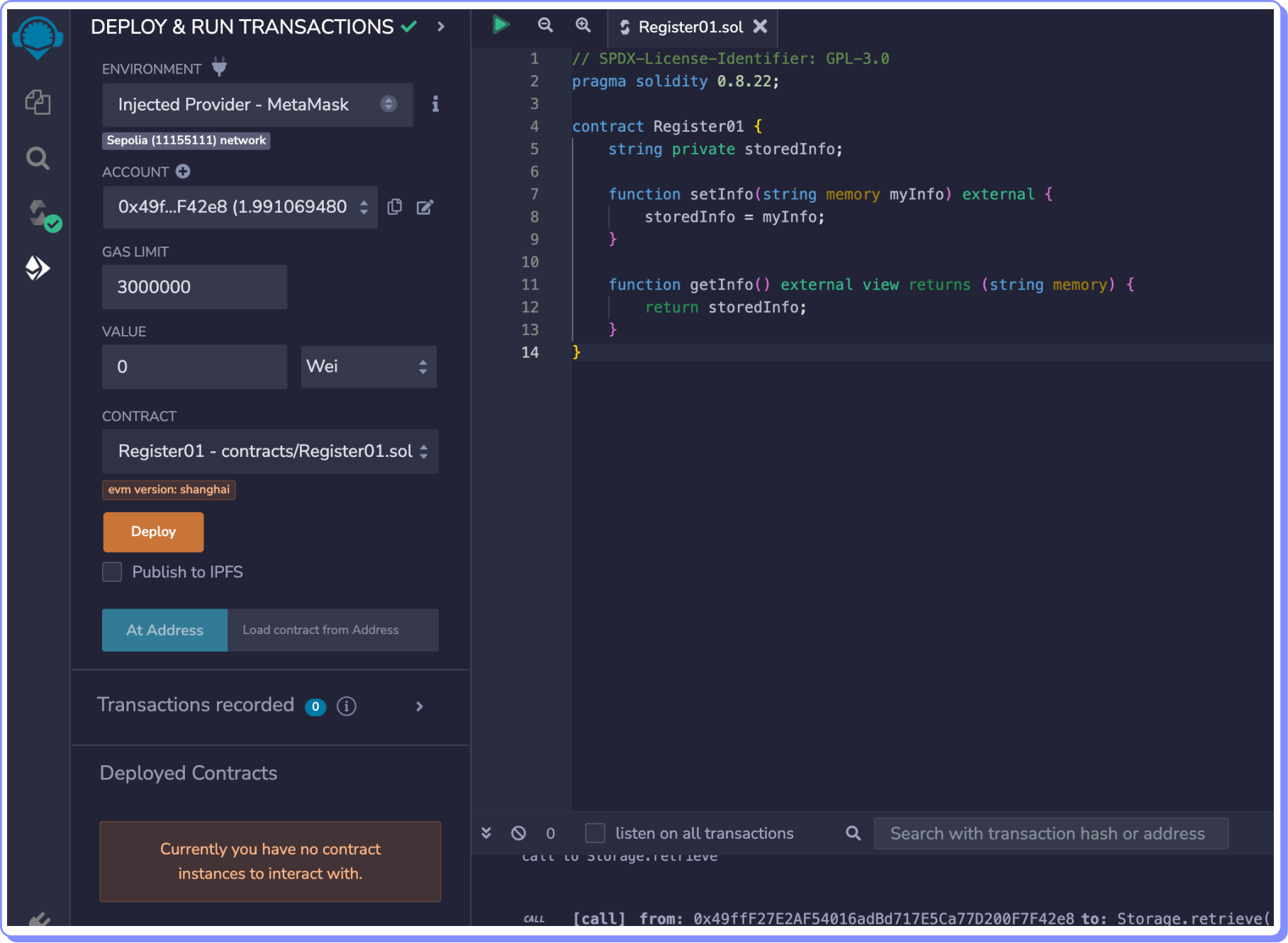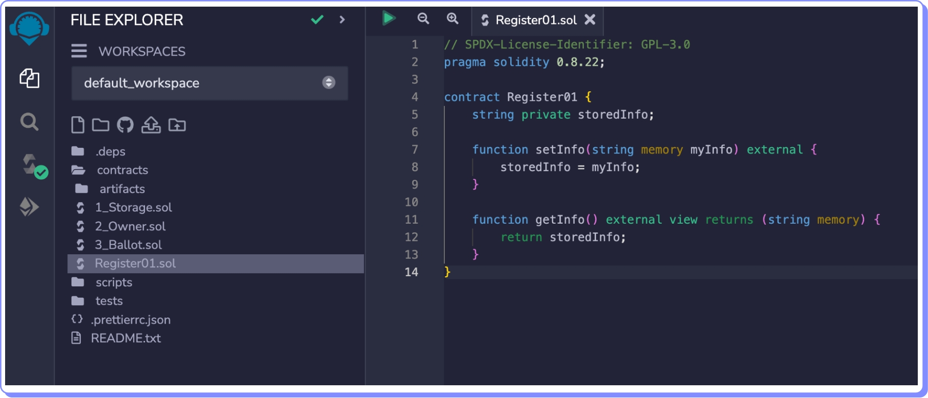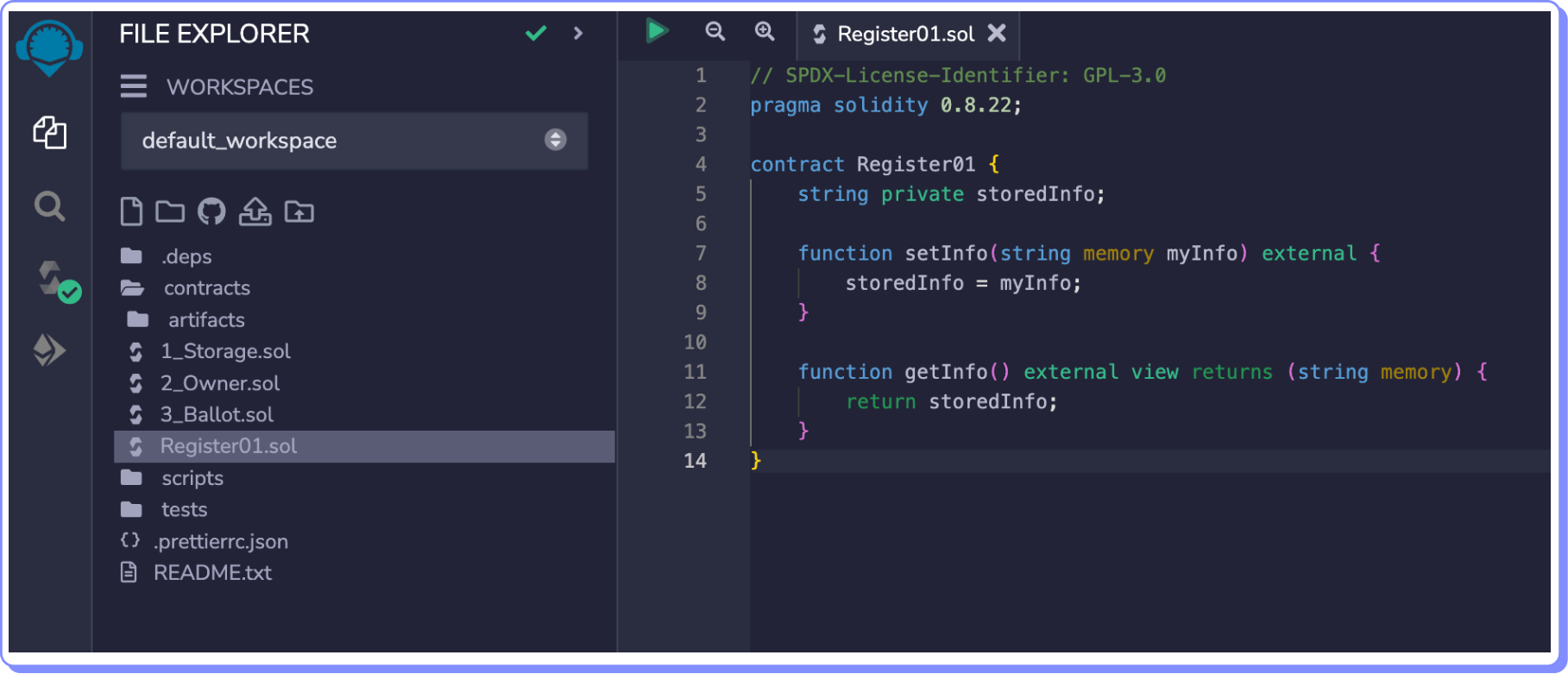 O contrato que implantaremos é o Register01.sol: