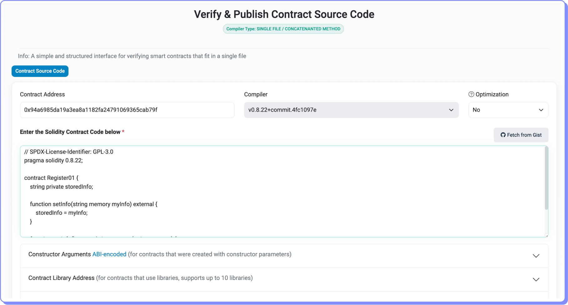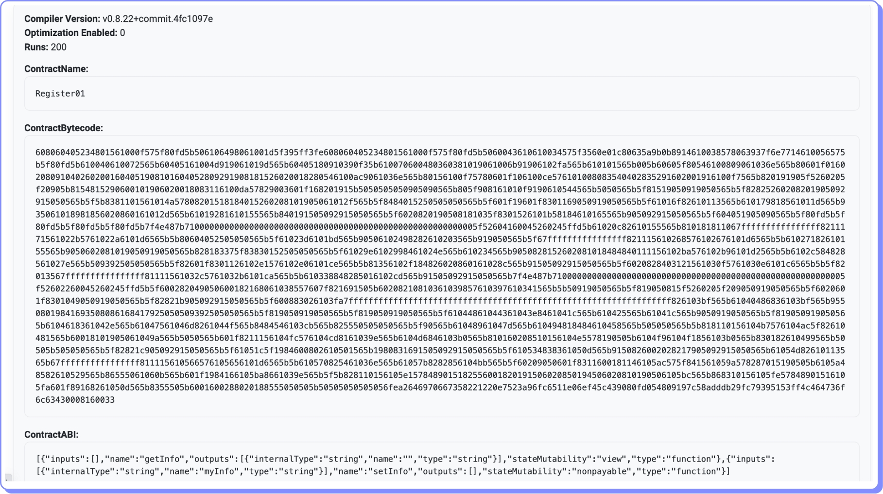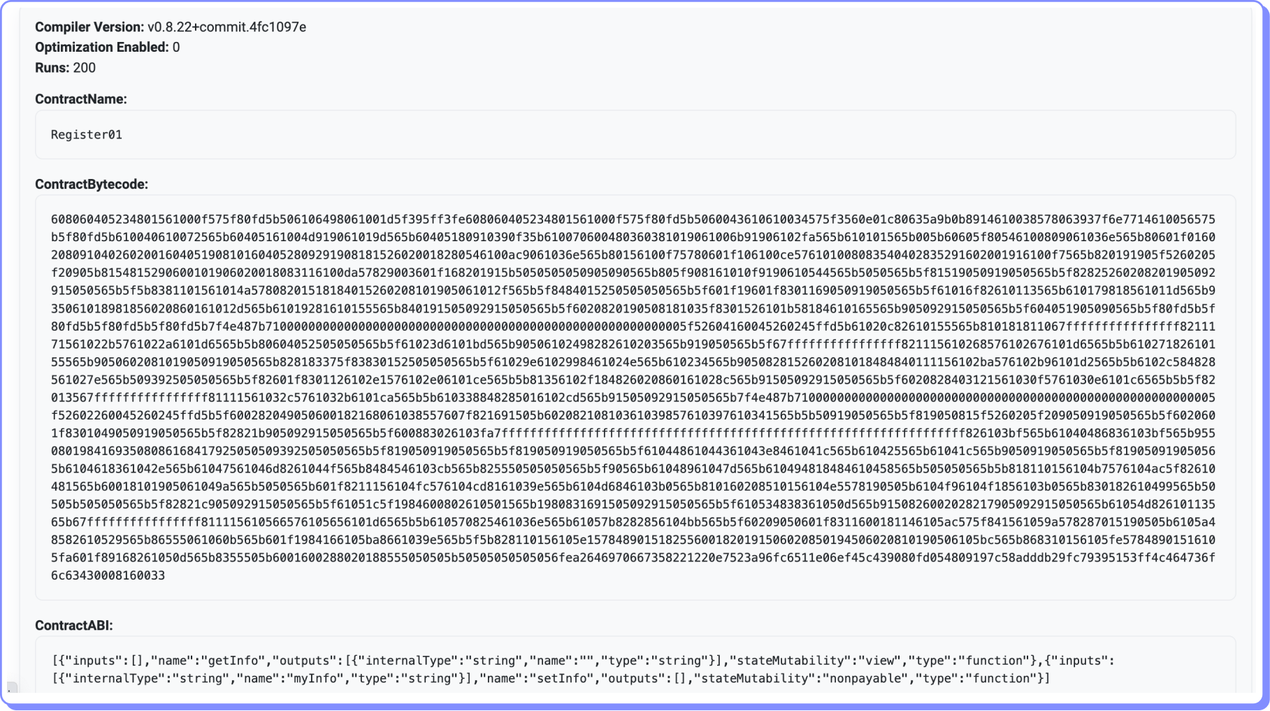 Como podemos verificar que corresponde ao código de Register01.sol?