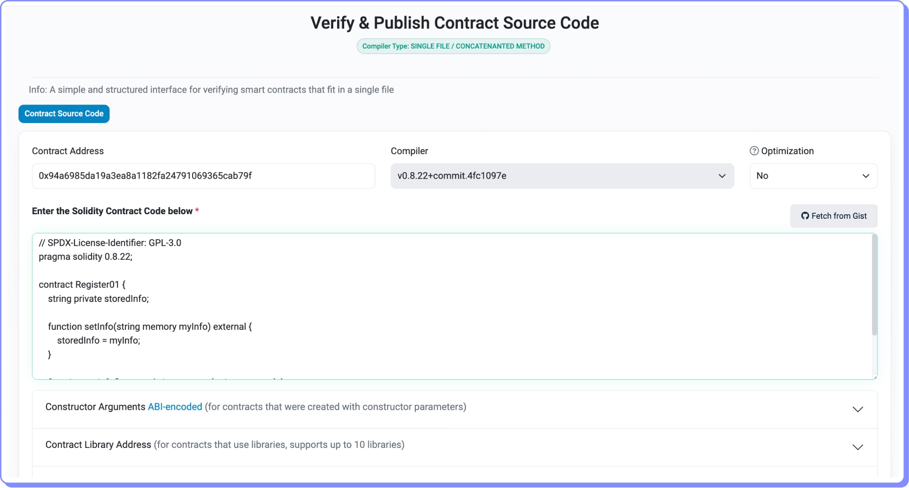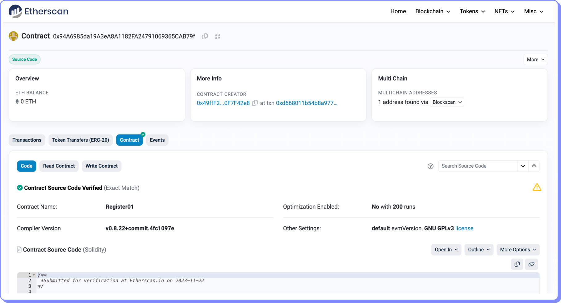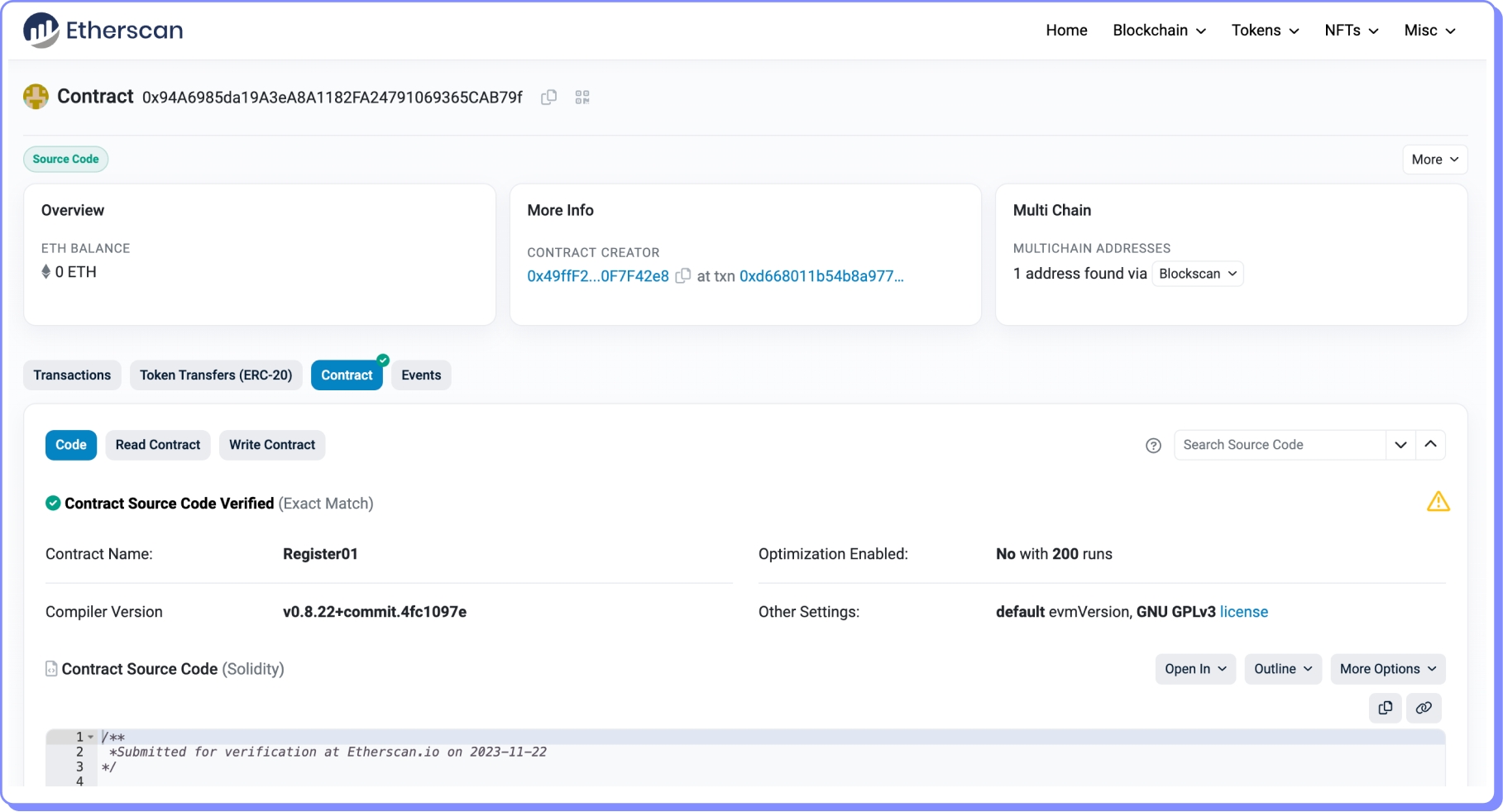 Como podemos verificar que corresponde ao código de Register01.sol?