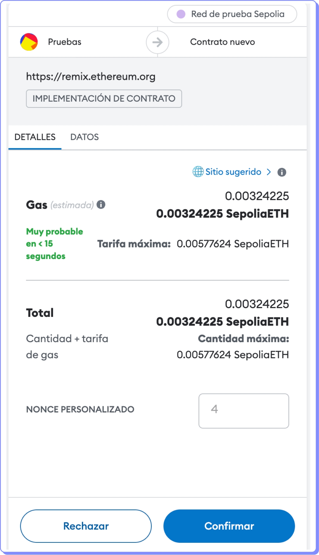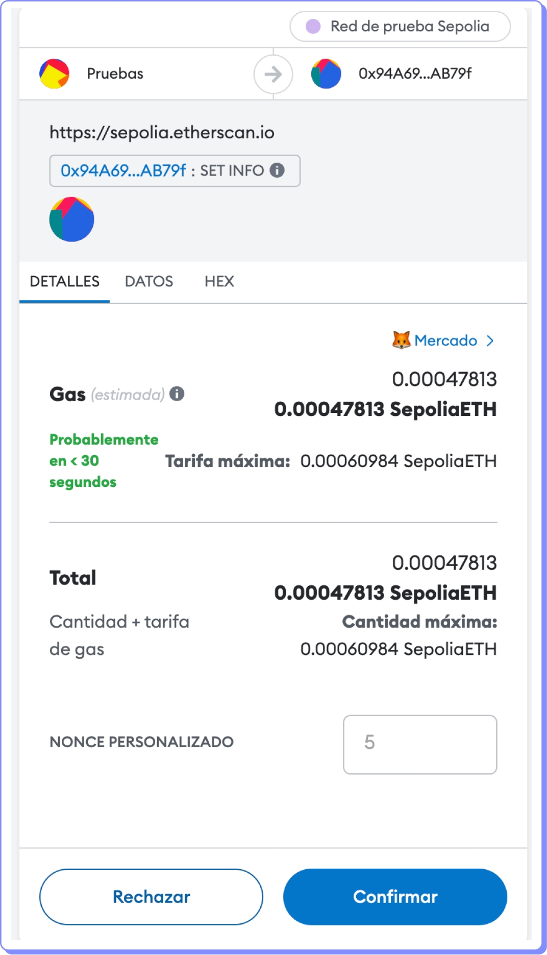 Aprovemos a transação em nossa wallet.