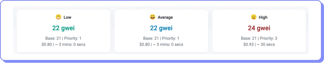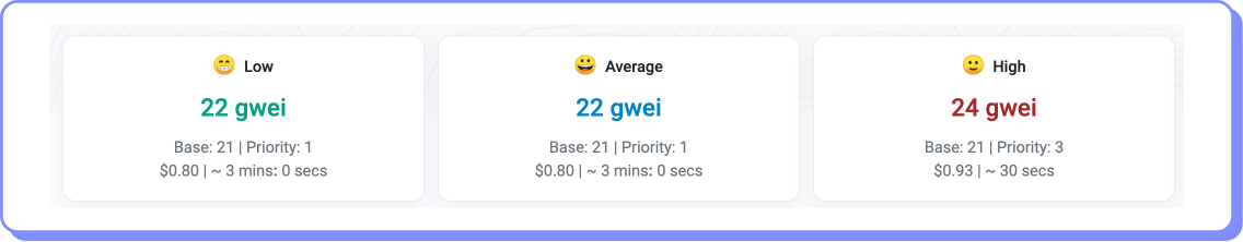 Dependendo da fee que incluirmos, nossa transação será executada mais cedo ou mais tarde, pois os validadores darão preferência às transações com o preço de gas mais alto, retirando-as do pool de transações para processamento. Portanto, se tivermos urgência para que nossa transação seja executada, precisaremos propor um preço de gas mais alto que a média do momento.