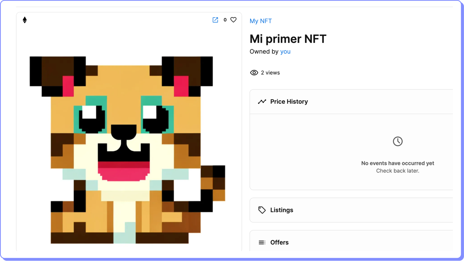 Se seguirmos os passos corretamente, poderemos encontrar o nosso NFT no marketplace.