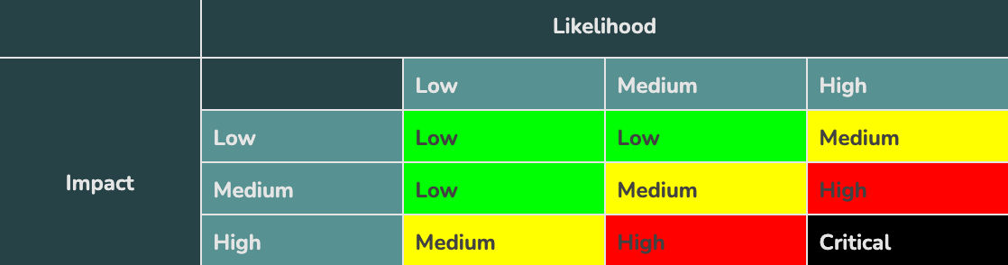 Normalmente, o relatório é organizado classificando os achados de acordo com a probabilidade de ocorrência e o impacto que podem causar. Os achados críticos e com alta probabilidade/impacto devem ser corrigidos com prioridade.
